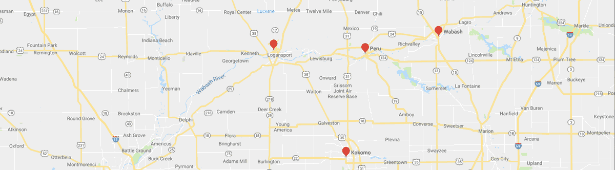 We service Kokomo, Peru, Wabash, Logansport